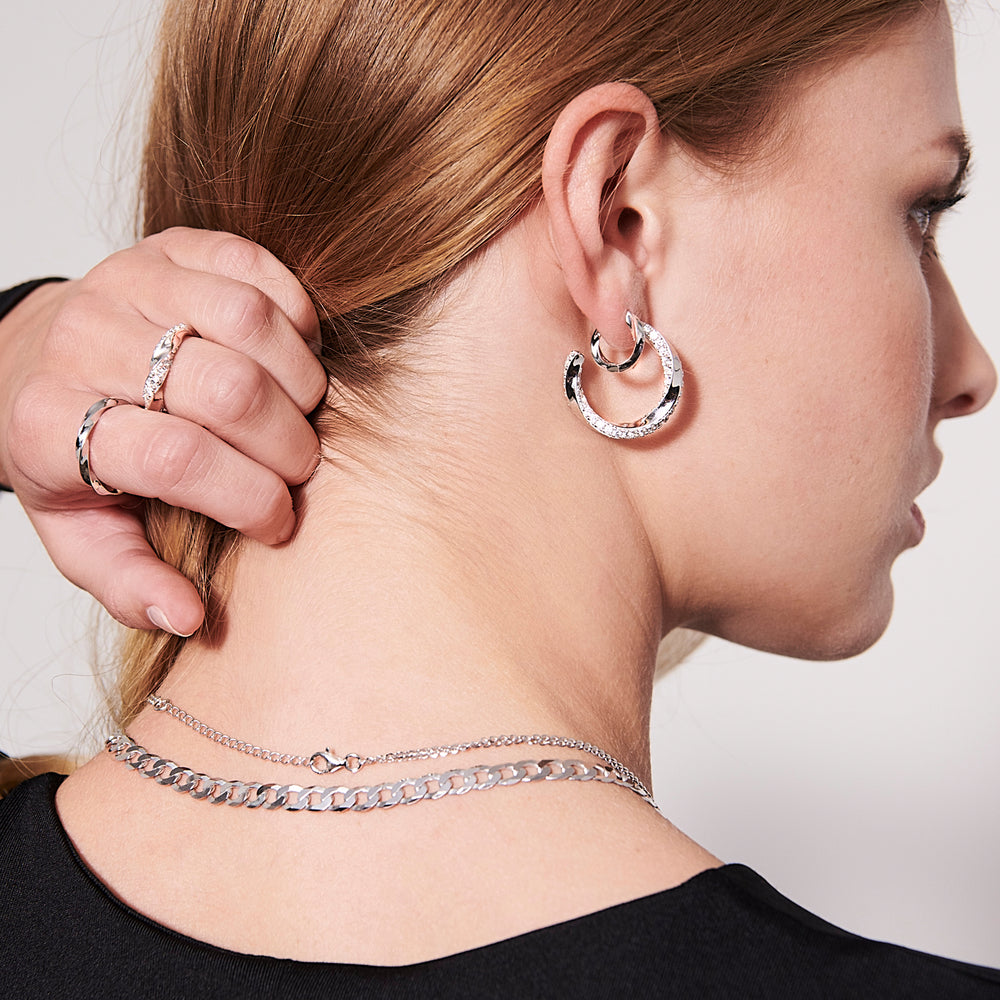Earrings made of 925 Sterling silver with rhodium, polished surface.