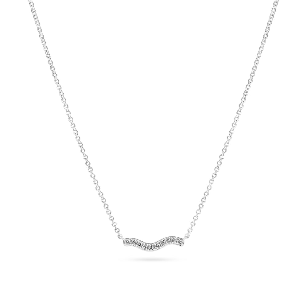 Necklace made of rhodium plated 925 Sterling Silver, a polished surface, and handset with facet cut white zirconia