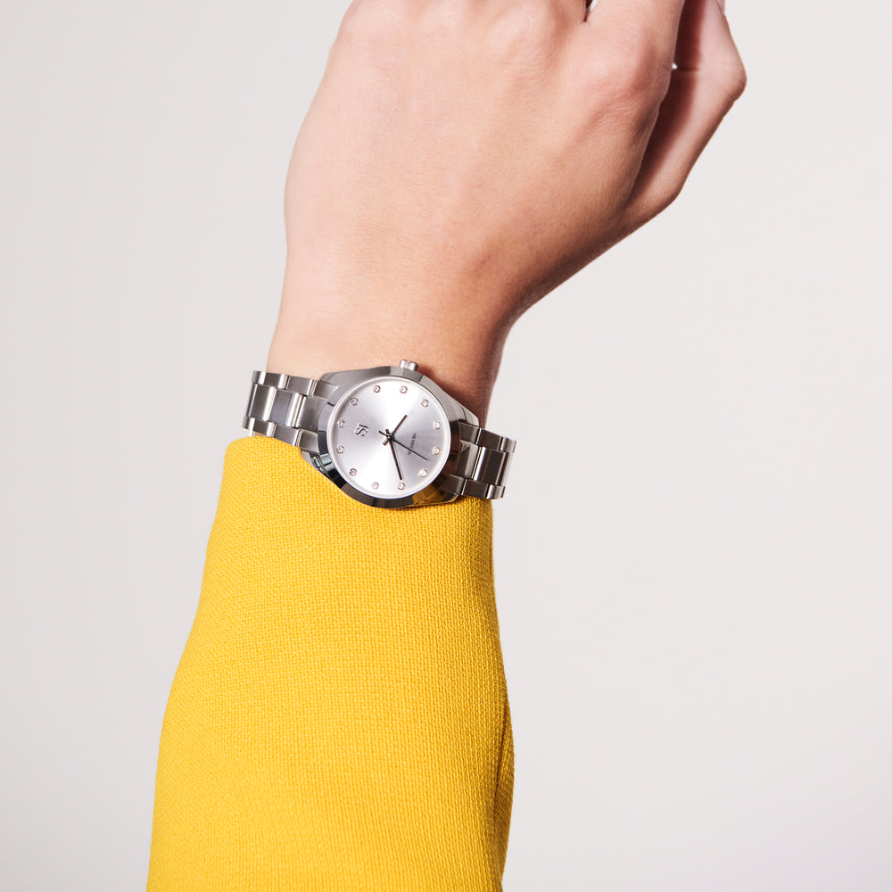 Watch measurements: Dial - Diameter 32,5 mm, thickness 10 mm.Bracelet - Length 18 cm, width 14 mm, thickness 3,4 mm